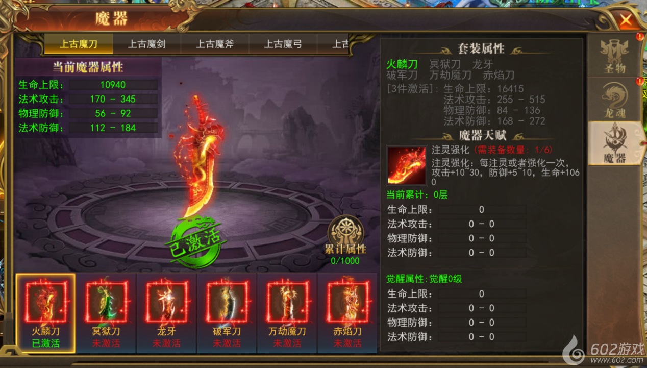 1、新增魔器,入口:圣物-魔器,开服第二天开启,上古魔界获取