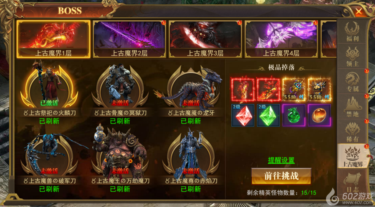 2、新增上古魔界地图,开服第二天开启,主要产出成品魔器和碎片