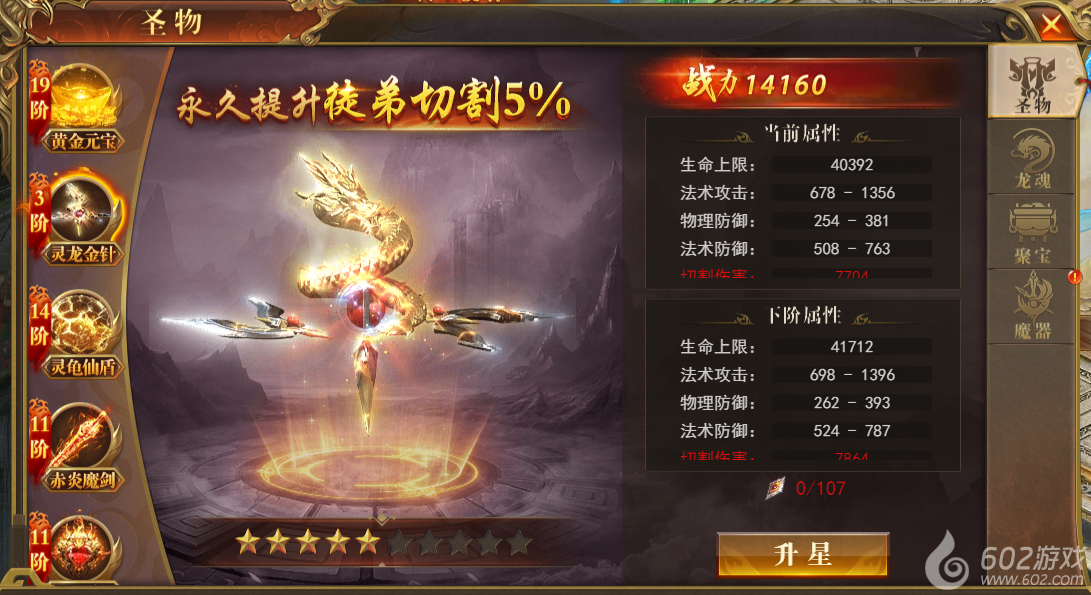 在线即可领取,激活永久提升徒弟切割。消耗圣物碎片可升阶