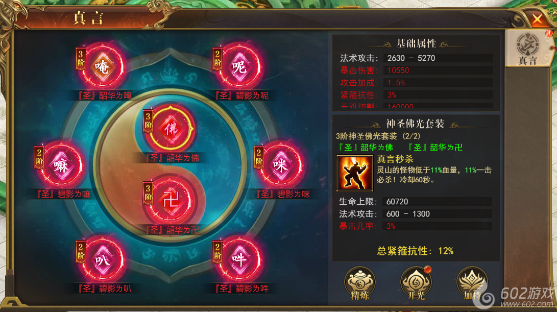 真言精炼---可使用精炼石进行精炼获得更多属性,精炼可增加紧箍抗性抵抗紧箍之力伤害