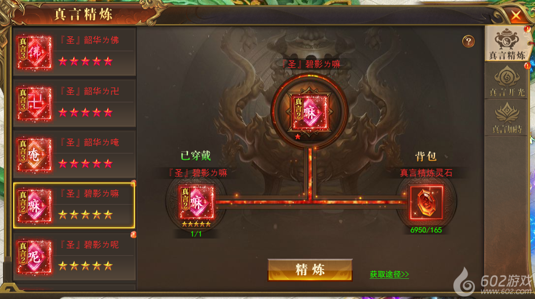 回收真言装备可获得精炼石