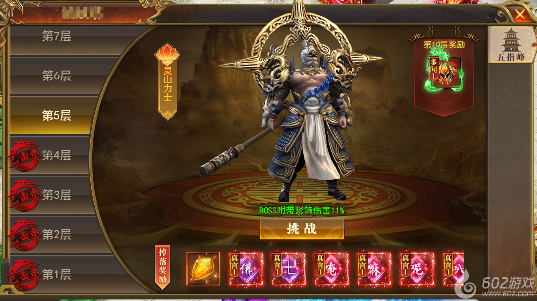 主要掉落真言装备及材料,每通关10层可领取首通大奖,更有天王附神圣装等你来拿