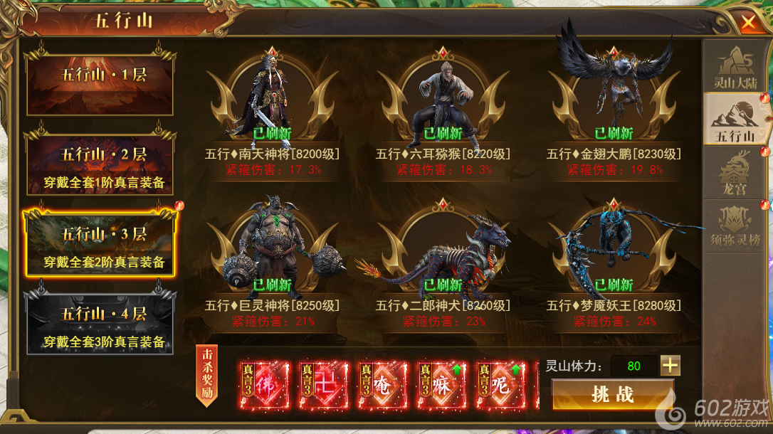 五行山boss都有紧箍之力伤害,需要紧箍抗性抵抗伤害,击杀boss需消耗灵山体力